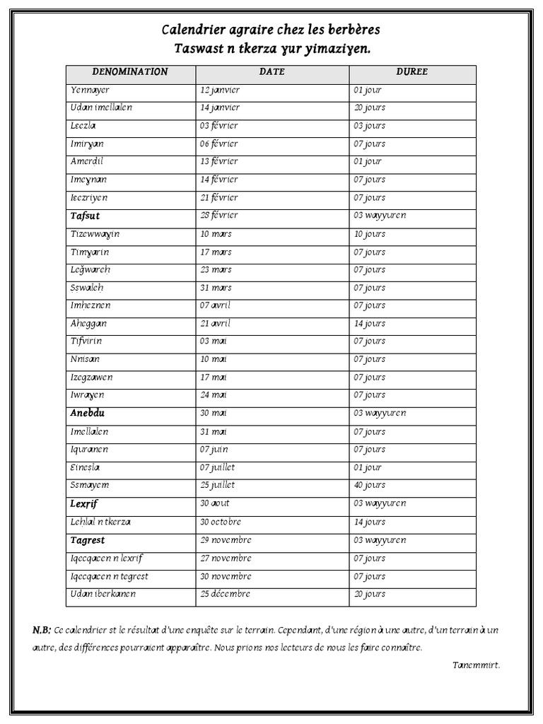 calendrier agraire berbère 2024 – TEXT_1. TEXT_2.