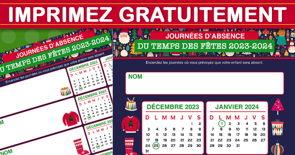 Listes des absences Temps des Fêtes 2023 2024 | Educatout
