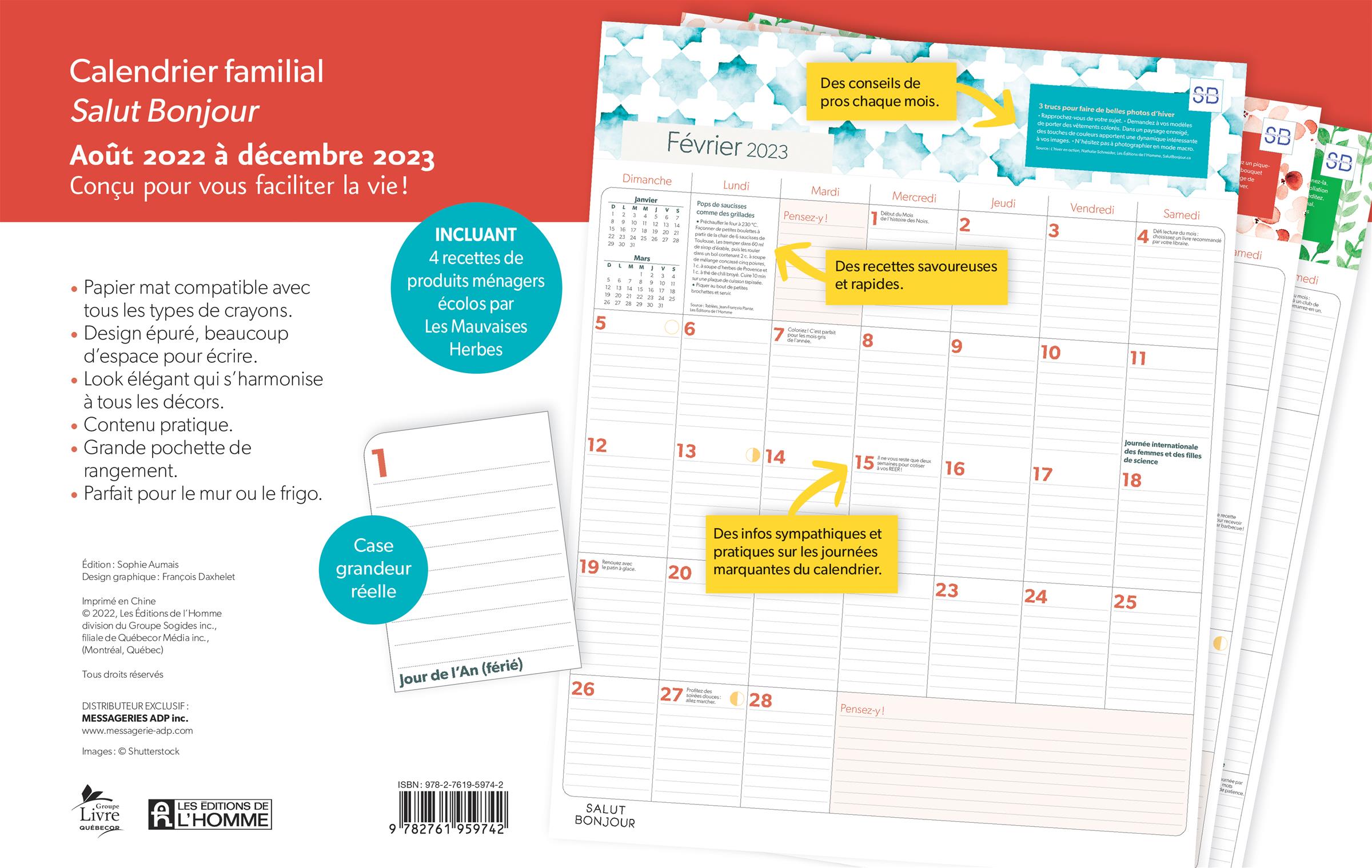 Calendrier familial Salut Bonjour 2022 2023 – QUB livre