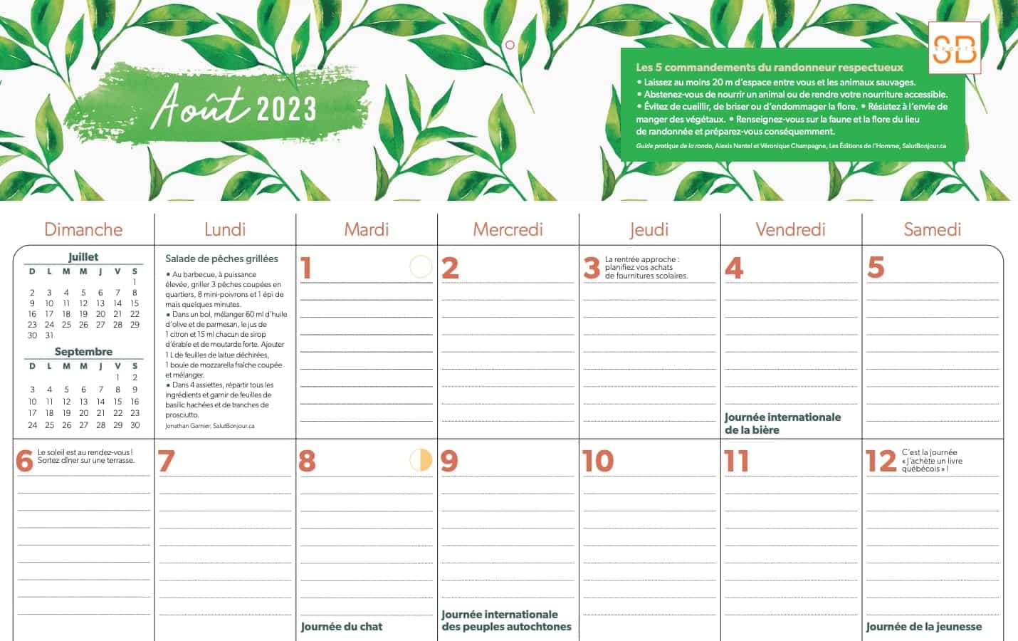 Calendrier familial Salut Bonjour 2022 2023 – QUB livre