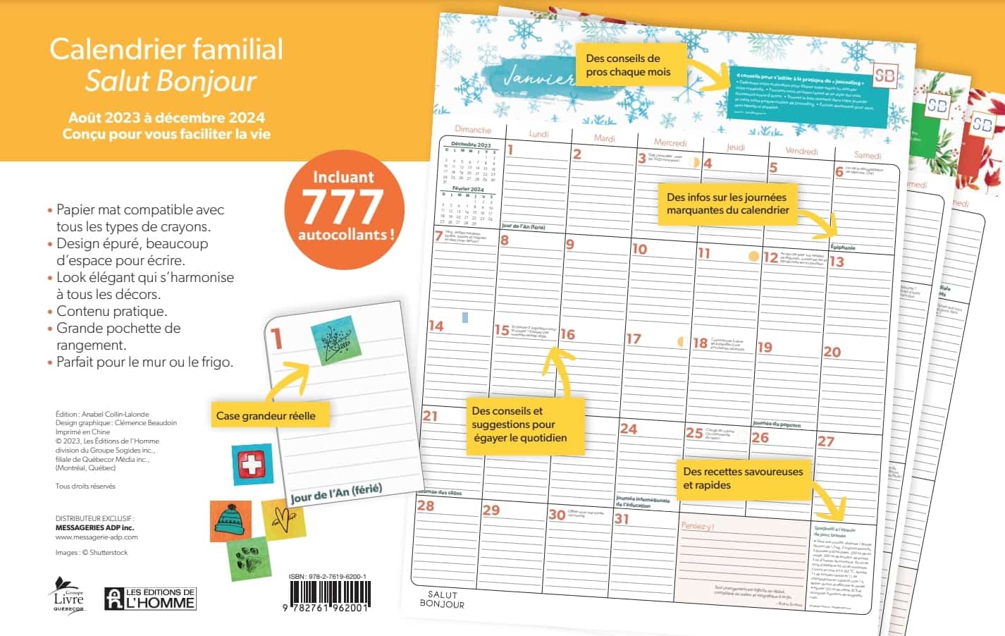 Calendrier familial Salut Bonjour 2023 2024 – Les Éditions de l’Homme