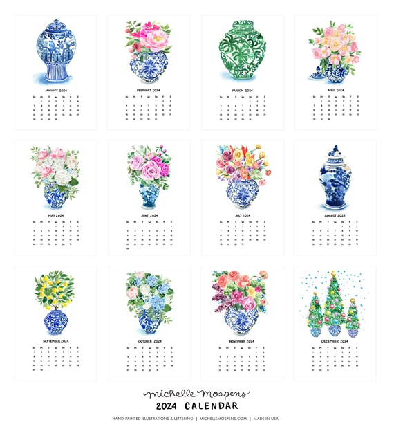 2024 Desk Calendar Mini Monthly Calendar Watercolor Etsy Österreich